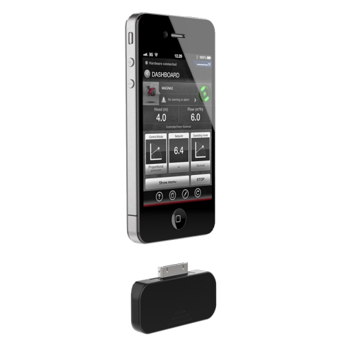 Является модулем расширения со встроенной инфракрасной и радиосвязью. Модуль может использоваться совместно с Apple iPod touch 4 gen, iPhone 4 и iPhone 4S с разъемом 30-pin или более поздними версиями. Применяется для насосов MAGNA, MAGNA3, CME, Hydro Multi-E, устройств MP204, CU300, CU301 с целью установления беспроводной связи с насосом посредством радио и инфракрасного соединений. Процесс передачи данных зашифрован, дабы защитить систему от несанкционированных проникновений и доступа. Заменяет пульт дистанционного управления Grundfos R100. Работу насоса можно контролировать и управлять системой при помощи приложения Grundfos GO, также есть возможность создания отчетов в формате pdf. Доступные функции зависят непосредственно от свойств каждого конкретного продукта, с которым будет устанавливаться связь.