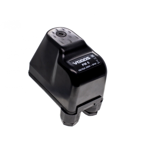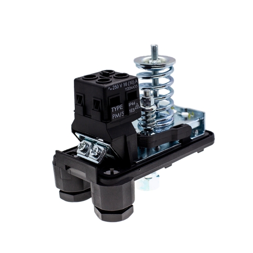 PM/5 представляет собой двухконтактное реле коммутации электрических цепей, срабатывающее по давлению воды. Принцип действия следующий: при небольшом (менее 1 бар или предварительно настроенной величины) давлении в системе водоснабжения контакты реле замкнуты, то есть через них проходит электрический ток на то или иное устройство, которым реле управляет; при превышении давления в системе определенной (предварительно настроенной) величины его контакты размыкаются, разрывая таким образом цепь питания управляемого реле устройства. После подключения и предварительной настройки реле давления работает в автоматическом режиме.