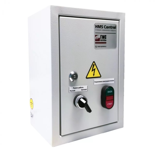 Станция HMS Control G представляет собой шкаф управления дренажным насосом разновидности ГНОМ. Управляющий сигнал поступает от поплавкового датчика, который реагирует на уровень жидкости. Станция автоматически запускает насосный электродвигатель по сигналу датчика уровня, а также отключает дренажный агрегат при внезапном коротком замыкании или перегреве.
