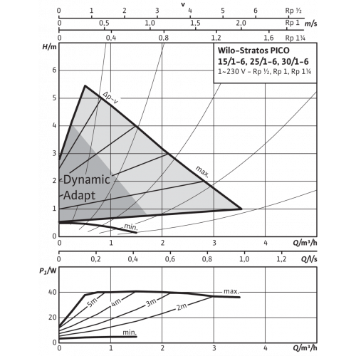 • выбор режимов регулирования частоты вращения для оптимального распределения нагрузки: Δp-c (перепад давления постоянный), Δp-v (перепад давления переменный) можно комбинировать с функцией регулирования Dynamic Adapt
