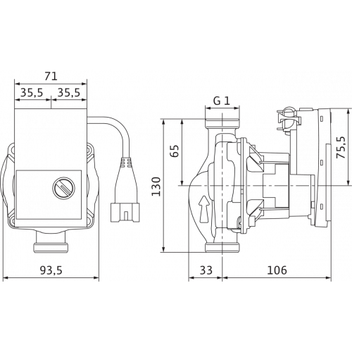 Циркуляционный насос с мокрым ротором с резьбовым подсоединением, электронно-коммутируемым двигателем, устойчивым к токам блокировки, и встроенным электронным регулированием мощности.