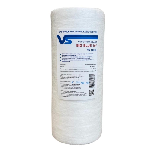 Картридж мех.очистки VODOS PREMIUM 10BB, 10мкм, вспененный полипропилен.