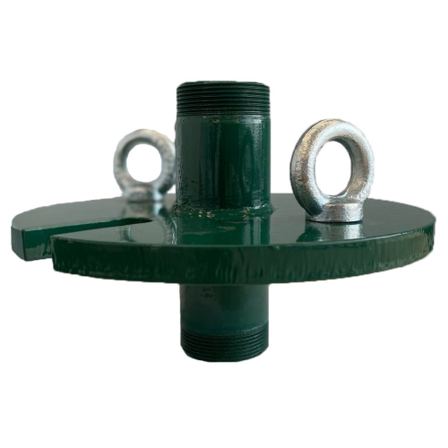 Оголовок является опорой для водоподъемной трубы скважины и защищает от попадания в нее посторонних предметов, оборудован отверстием под кабель, а также креплениями для внутренней или внешней подцепки троса.