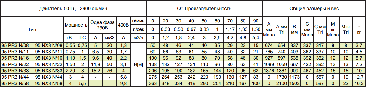 Скважинный насос PANELLI 95 PR 3 N/22 производство Италия обладает производительностью 5.42 м3/ч с максимальным напором 138 м