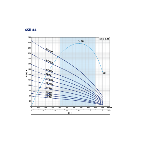 Рис. 1 - График производительности насоса Pedrollo 6SR