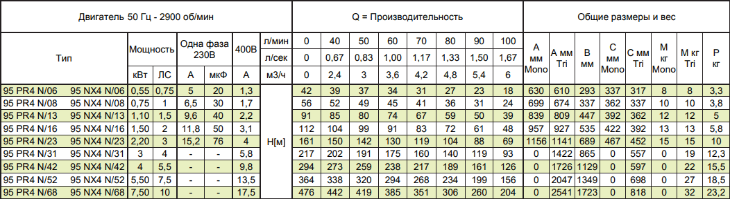 Скважинный насос PANELLI 95 PR 4 N/31 (380В) является надежным насосом, спроектированным и изготовленным в Италии для работы на протяжении многих лет без необходимости какого-либо обслуживания при условии правильной установки и эксплуатации. Насос состоит из центробежной многоступенчатой насосной части, непосредственно соединенной с маслозаполненным электрическим двигателем, предназначенным для работы только в погруженном в воду состоянии.